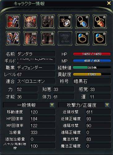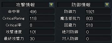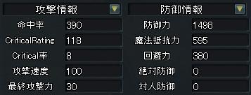 装備品のオプションの有無でステが結構変わりました(全身製錬+6です)