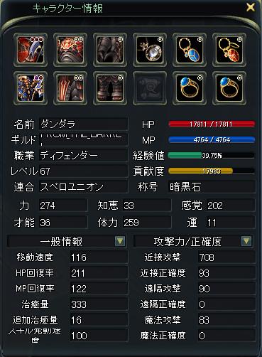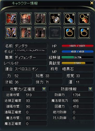 順番にログインしたばかりの頃→スキルポイント振った後→装備にオプションつけた後と載せました。